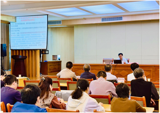 汪洋教授以《推進中國式現(xiàn)代化的行動綱領——深入學習貫徹黨的二十屆三中全會精神》為題,緊緊圍繞習近平總書記在黨的二十屆三中全會上的重要講話和全會《決定》,從進一步全面深化改革推進中國式現(xiàn)代化的重要性必要性、總體要求、系統(tǒng)部署、根本保證四個方面,對黨的二十屆三中全會精神做了系統(tǒng)全面解讀和深入闡釋,為與會人員進一步加深對全會精神的理解把握,切實用全會精神統(tǒng)一思想、統(tǒng)一意志、統(tǒng)一行動提供了有力指導。